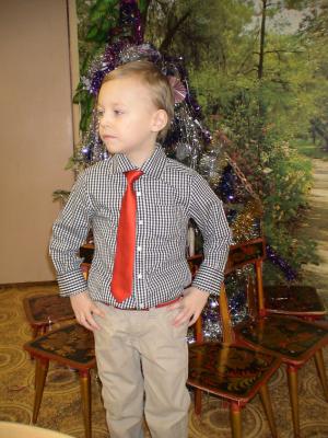 Это Ваня в саду на Елке. Что то я решила, что нам надо быть стильными.