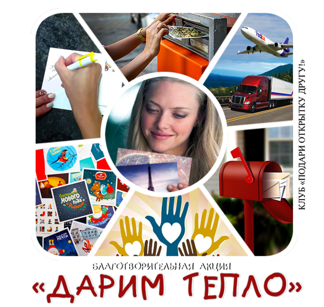 Клуб “Подари открытку другу!” объявляет о начале благотворительной акции “Дарим тепло”, в рамках которой открытки с приятными словами и наилучшими пожеланиями от наших Спонсоров-отправителей разлетятся по всему миру и найдут своего адресата, где бы он не находился.