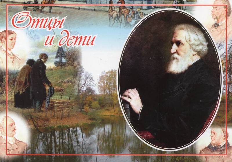 На открытках портрет Тургенева в разные годы жизни, а также иллюстрации к его произведениям и естественно название сего произведения.