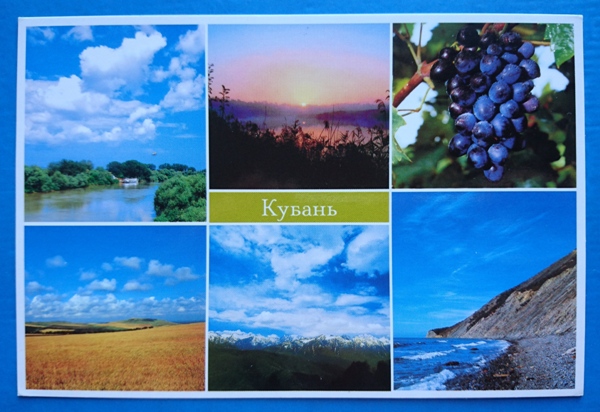 Прогулочный теплоход на р.Кубань. Озеро в районе ст. Суворовской. Виноград. Поля в районе ст. Тамани. Главный Кавказский хребет. Берег моря в районе Мысхако.