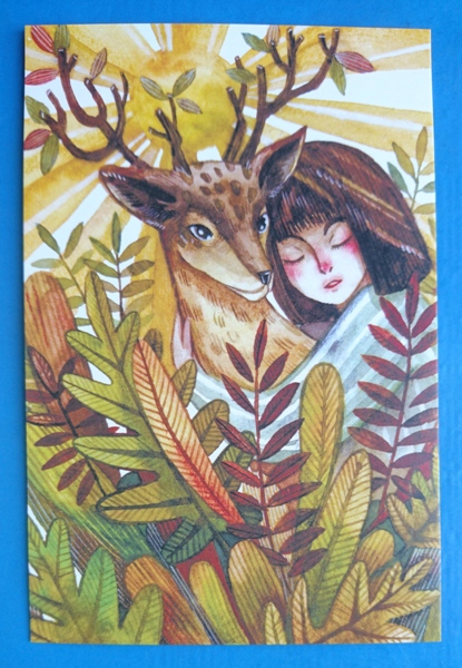 Художница Анастасия Морева. Марина, получила твою открытку в последний день октября, так что были всякие там мысли про Хэллоуин, но твоя подпись на обороте интереснее и душевнее. Спасибо.