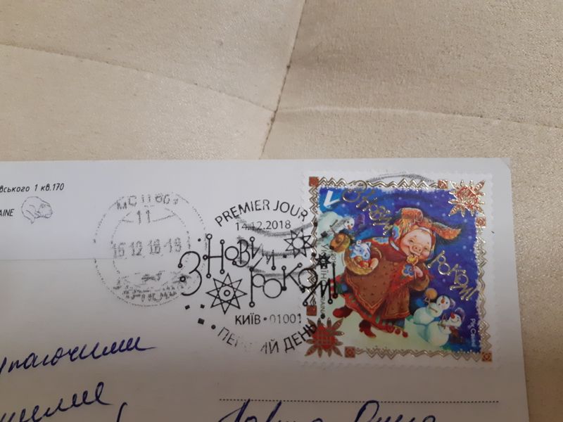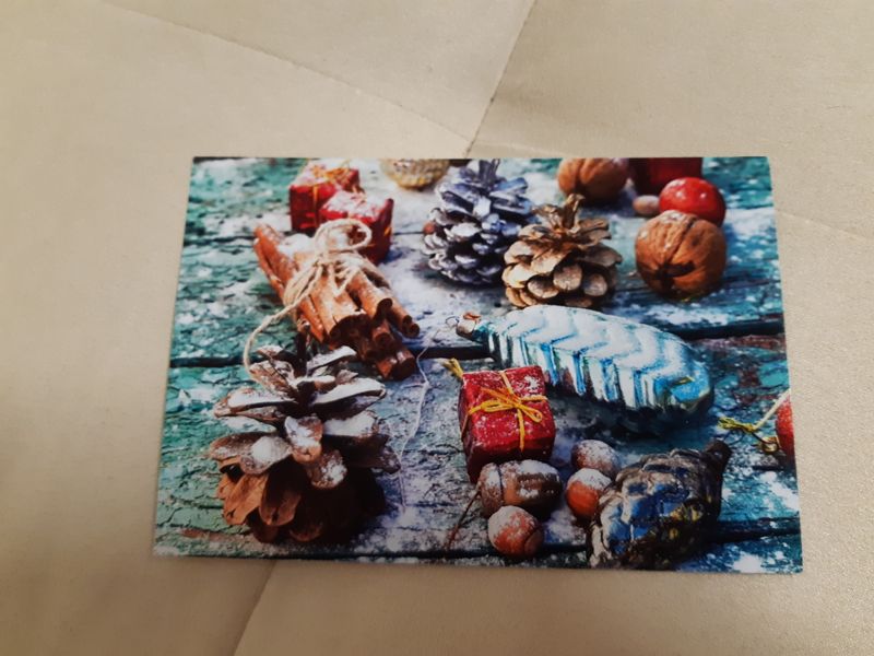 ...А когда я налюбовалась открыткой, что-то смутное мне про неё вспомнилось, и... Таки да, я же тоже сделала новогоднюю закупку в Почтомании)))