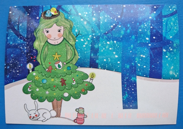 Рождественская елка. Дарья Нюберг. Ганнуся, не поверишь, Ма связала мне за новогодние праздники такого же цвета платье, еще и с зигзагообразным рисунком, так что друзья называют меня в нем елочкой. Спасибо тебе за эту открытку.